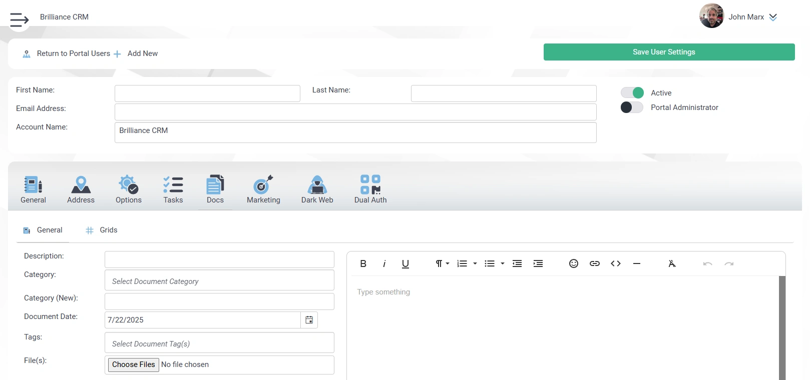 - Notes: A text box for adding internal notes about the document.