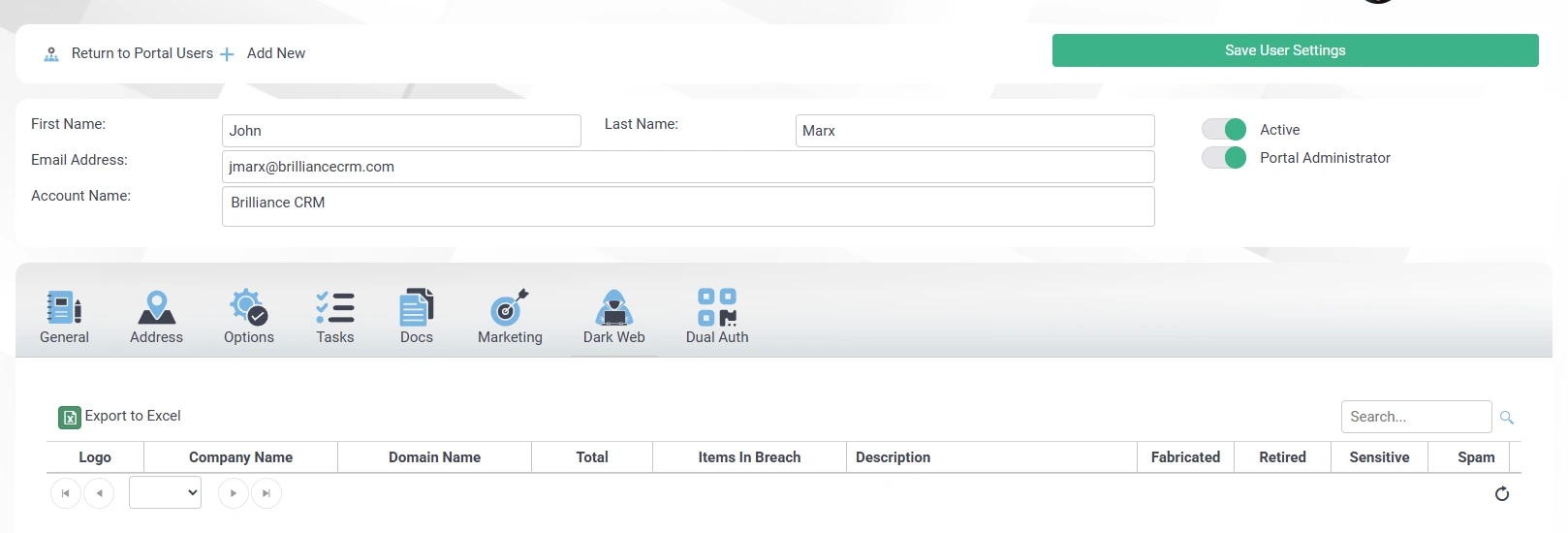 Note: This feature may be disabled or show no results in the demo environment, so the log may appear empty. In the live system, this grid will populate with any known breaches.