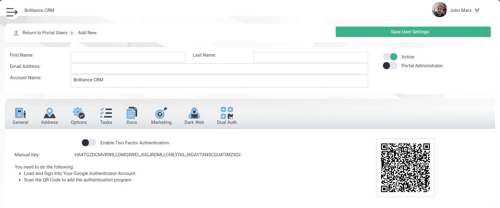 Instructions: To enable 2FA, the contact will need a mobile authenticator app (like Google Authenticator or Authy).